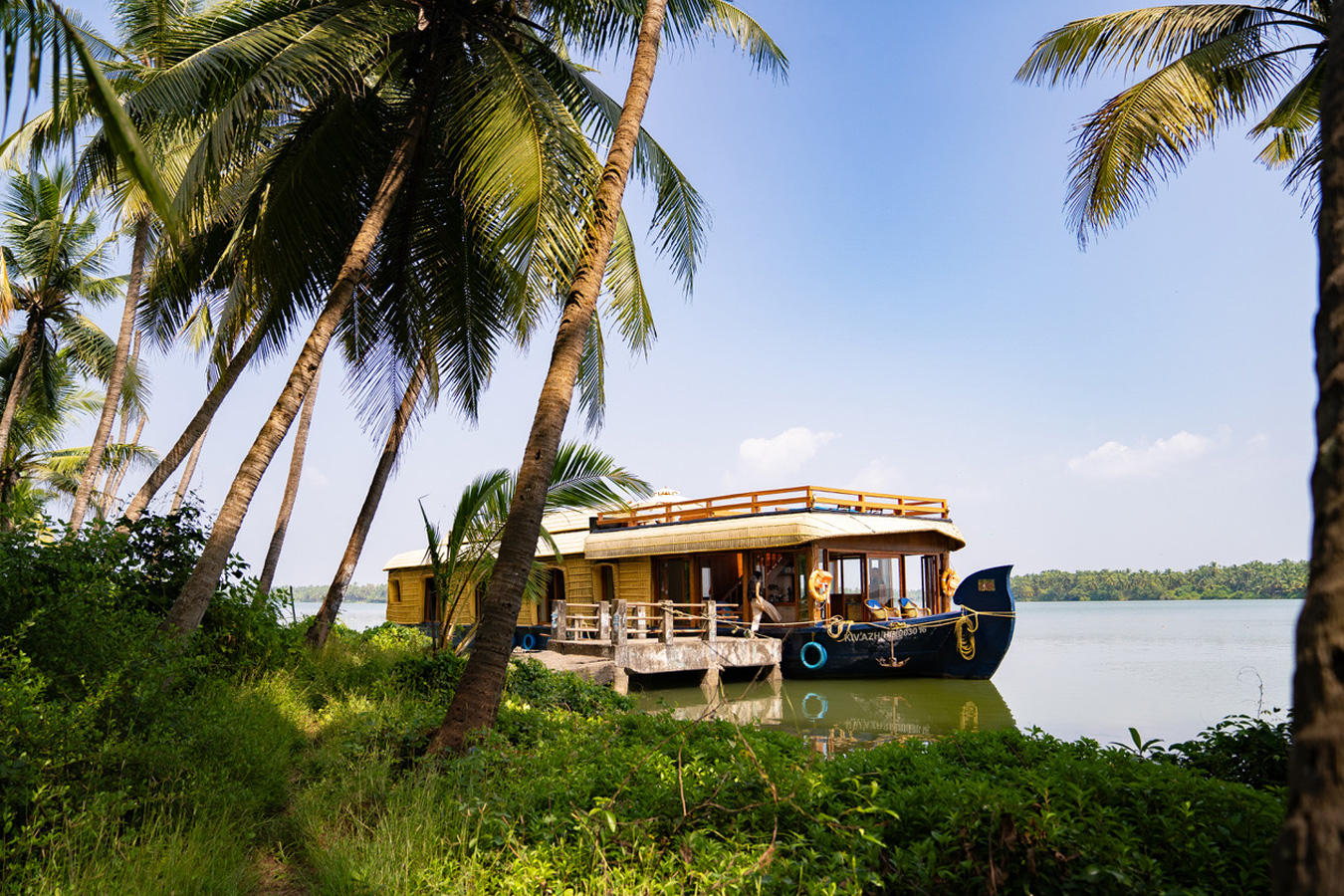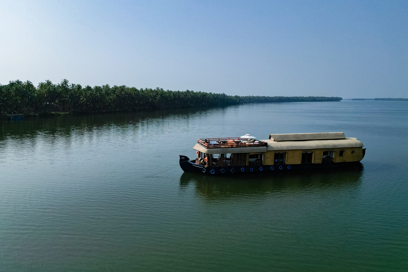 In Kerala, unwind with two nights at Neeleshwar Hermitage, followed by a serene night cruise aboard the stylish Lotus, drifting gently through the magical backwaters in complete privacy.