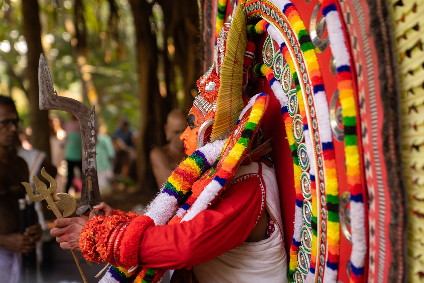 Later in the day, guests visit a nearby temple or village to witness the sacred Theyyam ritual dance, followed by a peaceful evening meal and reflection.