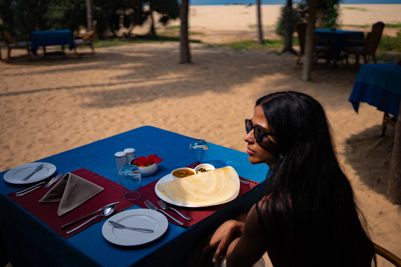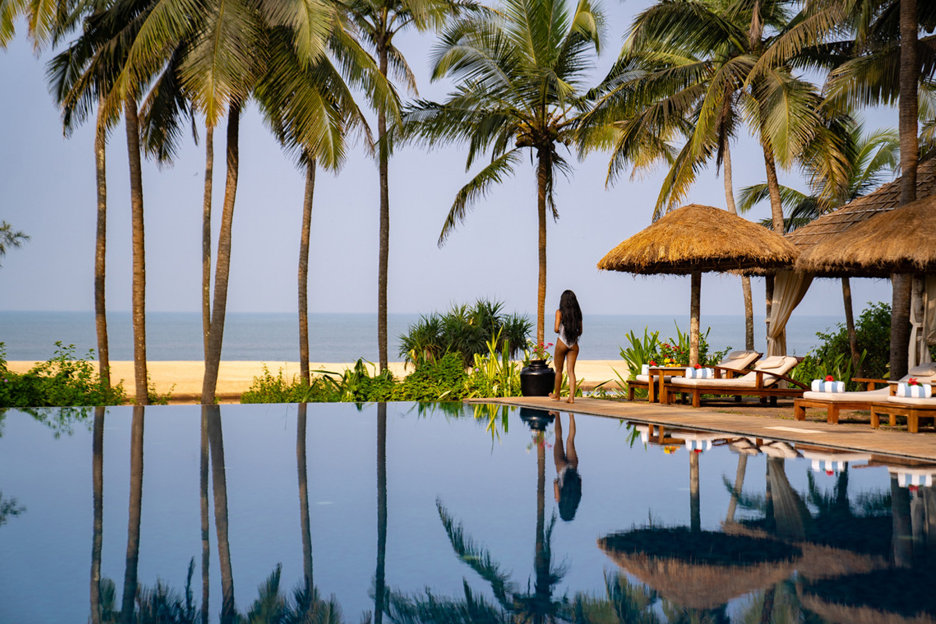 Between scheduled sessions, guests are encouraged to enjoy the unhurried rhythm of Neeleshwar Hermitage. Relax by the large infinity pool with stunning views of the Arabian Sea, wander through lush tropical gardens, or lose yourself in a book beneath tall coconut palms while resting in a hammock. Guests may also visit the on-site tailoring boutique, select their preferred fabric, and have garments custom-made as desired. For those seeking simplicity and solitude, long beach walks along the quiet shoreline offer moments shared only with local fishermen and seabirds, creating space for reflection and connection with nature.