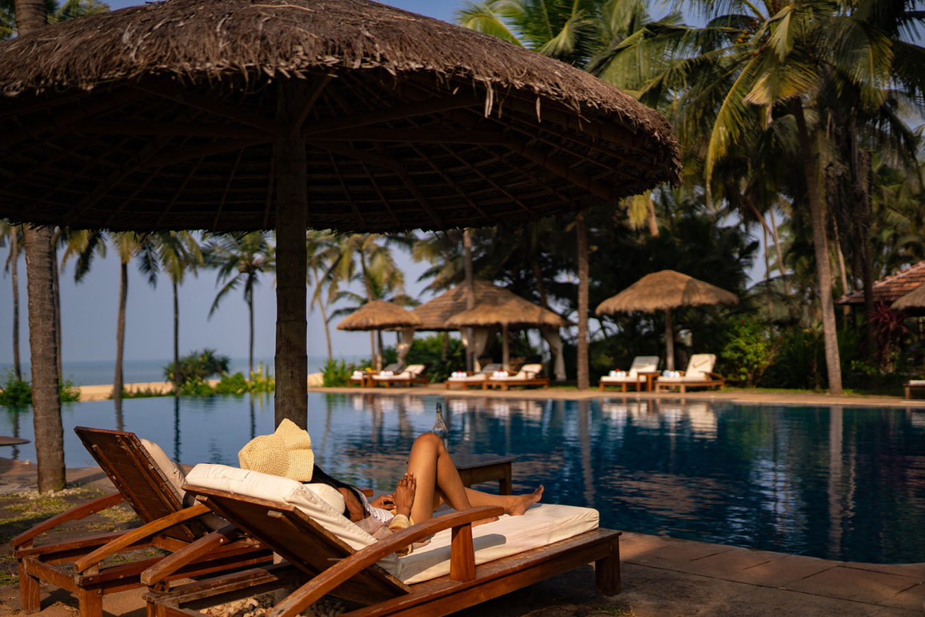 The retreat is hosted across 18 elegant cottages, reserved exclusively for the group and thoughtfully spread across three distinct categories. These include 3 Sea View Plunge Pool Cottages, 4 Sea View Cottages, and 11 Garden View Cottages. Each cottage is airy, spacious, and designed in traditional Keralan style, with open-to-elements bathrooms that invite guests to feel deeply connected to nature.