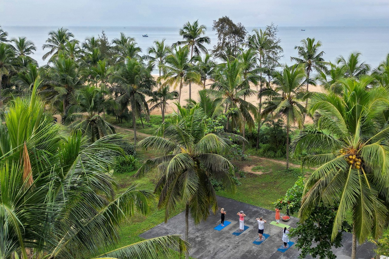 Yoga and meditation sessions are guided by Neeleshwar Hermitage’s own experienced Yoga Master and full-time yoga team, offering authentic instruction rooted in traditional practice. Sessions take place in the covered Yoga Shala or on the garden terrace, both offering uninterrupted ocean views and accompanied by the calming natural soundtrack of waves and sea breeze.